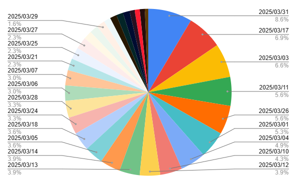 やはり末日が最多の割合になっていることがわかります。